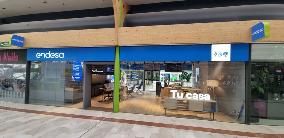 Este ambicioso proyecto incluye la implantación de imagen corporativa y mobiliario comercial, con la fabricación e instalación de elementos de imagen interior y exterior, así como la integración de mobiliario a medida adaptado a la nueva identidad visual de Endesa.